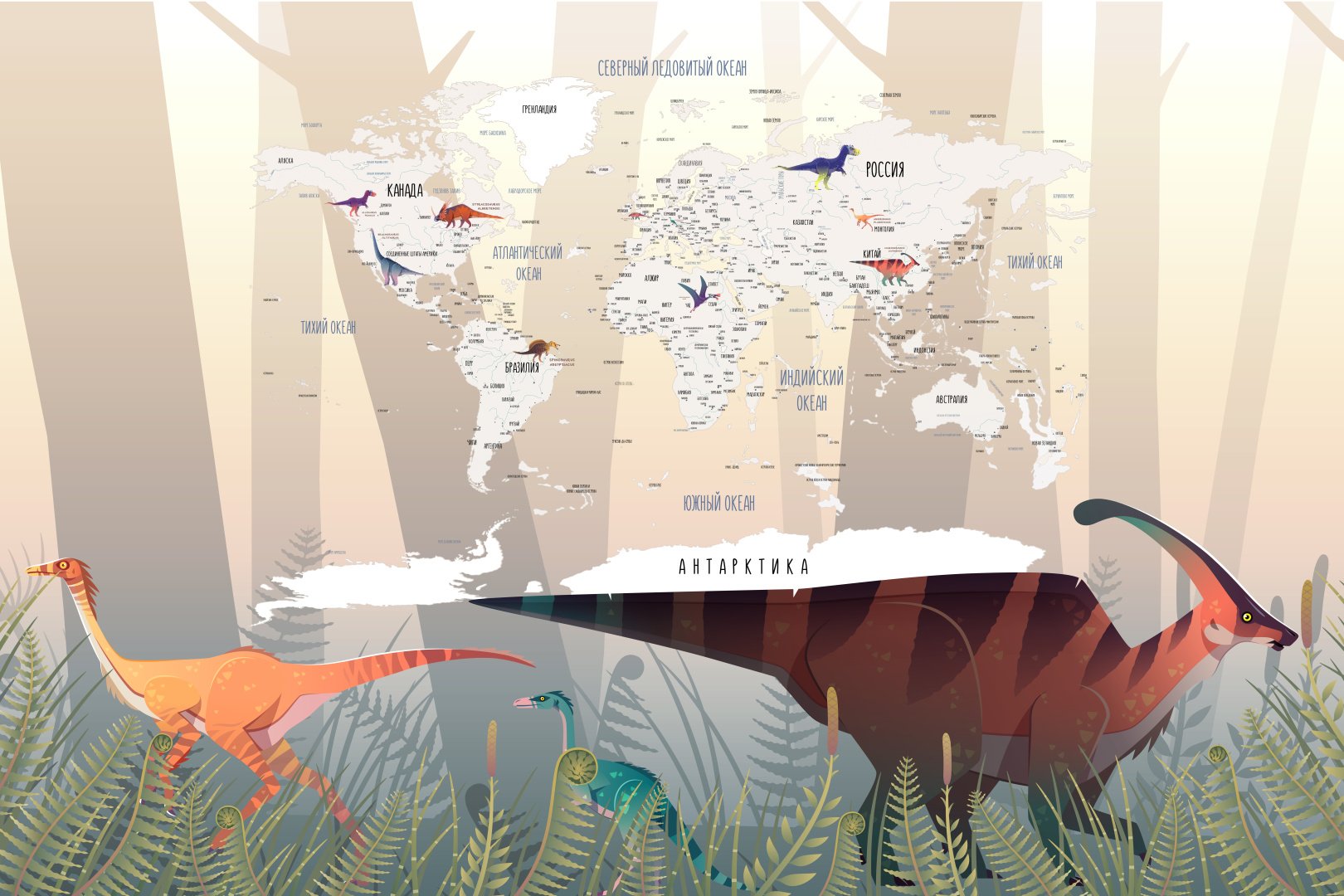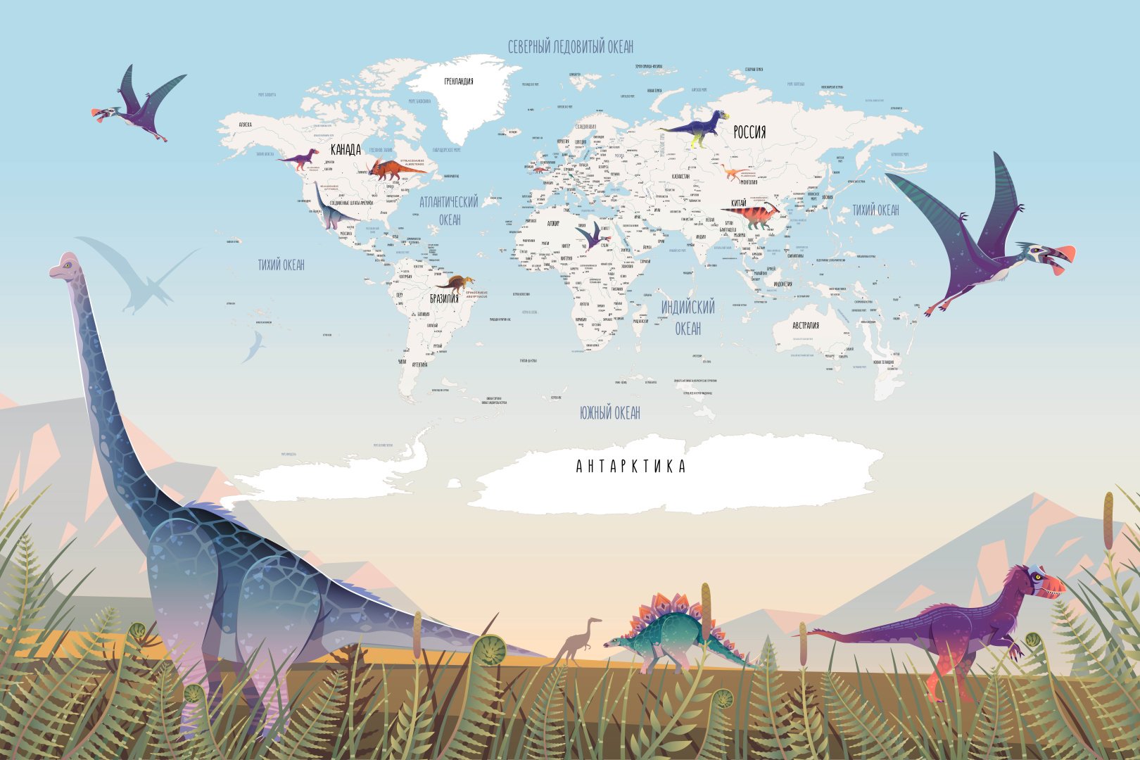 Карта мира: Динозавры